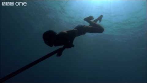 Solben a malajziai 'tengeri' Bajau törzsből, hogy búvár 20 méter elkapni a halat. BBC emberi bolygóról