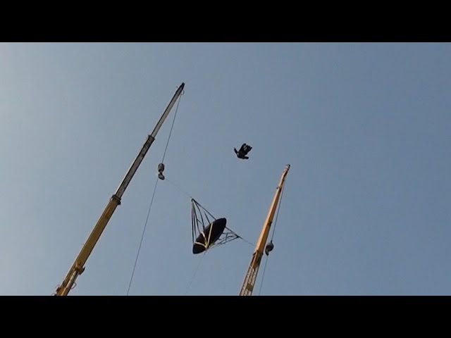 A Chris McDougall, és Jimmy Pouchert Douggs, üzleti alap jumper, elindított egy hatalmas katapult a space ugrik ejtőernyős Dubai. A két barát elérte a sebesség 200 km / h egy másodpercen belül, hogy indítson.
