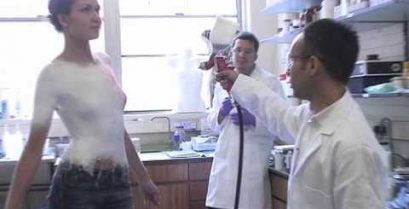 Spanyol divattervező Manuel Torres épített egy folyékony anyag, melyik mikor menstruáció-ba egy tartós szerkezet permetezett.