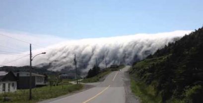 Egy ritka jelenség, ahol egy hatalmas vastag köd tekercs a Long Range-hegység, a sziget Newfoundland, Kanada.