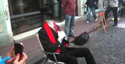 Vándorló művész csinál egy ügyes trükk a Buenos Aires, Argentína.
