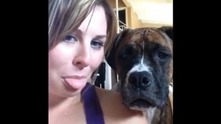 Egy kutya utánozza a idioktitria előtt a webkamera.
