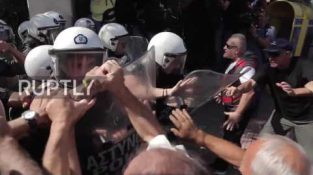 Görögország: Nyugdíjasok rock rendőrségi busz Athén elleni megszorító rally