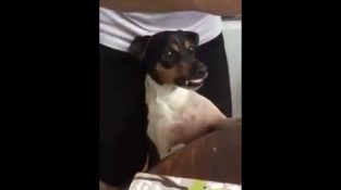 A Jack Russell magasan együttműködés, Míg a tulajdonos ecset fogai. Mikor arra kéri őt, hogy mosolyog, a kutya mutatja a fogait, Tehát akkor a leghatékonyabb, fogmosás.
