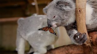 A Symbio Wildlife Park Zoo, Helensburgh, Ausztrália, a pillangó megzavarja a fűzfa, a baba Koala. Míg abban a pillanatban valaki húz a videó a kis Koala, A pillangó leszállt az orrán [...]