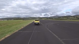 Fiatal mérnökök Llanbedr Anglia kísérletet, hogy egy autó Reliant Robin trike repülni.