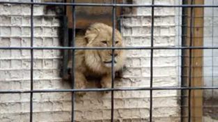 Zoo Texas, oroszlán dühös jön egy lyukon keresztül a kamrában, és morogva emberek, akik keresik.
