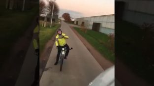 Egy kerékpáros megtagadja tip át egy teherautó egy kis beton út Rijkevorsel Belgium. Még ha a járművezető felé tolódott el a jogot, hogy hagyja, hogy a kerékpáros [...]
