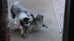 A kutya fut a nehézkes macska