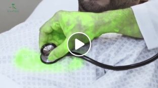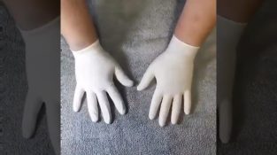 kesztyűben, egy ember megmutatja nekünk, hogyan kell mosni a kezét megfelelő. Fekete festék, hogy megmutassa az összes pontot, hogy a szappant. Ha csak dörzsölje a belsejét [...]
