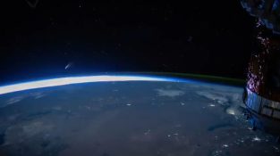 Neetise üstökös, amely 103 millió kilométer távolságra van a Földtől, amint azt a Nemzetközi Űrállomáson láthatjuk. Az üstökös megjelenése a videóban délután háromkor kezdődik.:20.