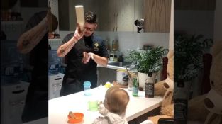Sany Bacsi, egy profi csapos, aki Dubajban dolgozik, tejet készít a kisfia számára.