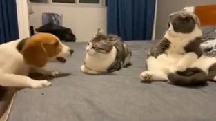 Egy macska pontosan kiszámolta ellensége hatótávolságát, és nyugodtan, biztonságos távolságban ül.