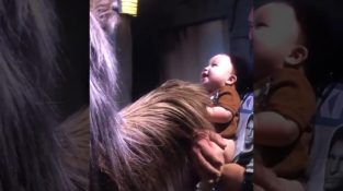 Egy csecsemő találkozik Chewbaccával