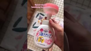 Egy aranyos krémes szappan Japánból, virág alakú szappant hagyva maga után.
