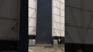Erős vihar erős széllel az alabamai gyár hatalmas ajtaja közelében.