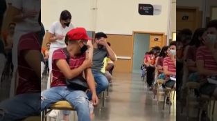 Egy oltóközpontban Chihuahua -ban, Mexikóban, egy férfi sikoltozik a félelemtől, és lehunyja a szemét, amikor a nővér közeledik, hogy oltassa.
