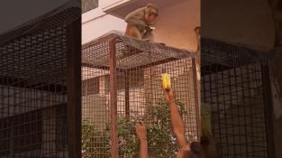 Az embernek váltságdíjat kell fizetnie egy majomnak, hogy visszakapja a szemüvegét.