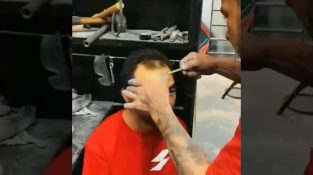 Egy férfi gyors hajbeültetéssel segít egy barátjának.