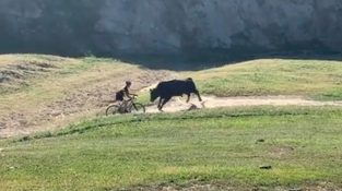 Bika megtámad egy kerékpárost