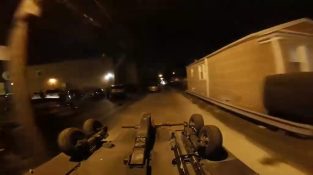 Egy illegálisan karambolozott autó az Egyesült Államokban, 10 másodpercen belül daru vontatja.