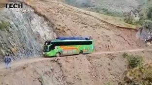 Egy úton, Huanuco városa közelében Peruban, egy buszsofőr keresztezi a járművét, miközben fennáll a veszélye, hogy lezuhan egy szikláról.