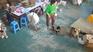Egy corgi kutya megtámad egy kisebb uszkár kutyát, míg nem sokkal ezután egy macska a kisebbik kutya védelmére kel.