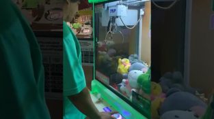 Egy férfi egy rendkívül valósághű plüssállatot nyer a karmos játékban.