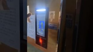 Egy férfi Kínában megmutatja nekünk az ajtóra szerelt alacsony biztonsági rendszert, és arcfelismeréssel működik.