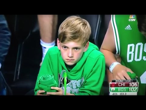 Reaksi penggemar muda Boston Celtics terhadap paku Jimmy Butler di tembakan lemparan bebas peti mati di Game 1 seri playoff Chicago Bulls vs Boston Celtics (16 April, 2017)