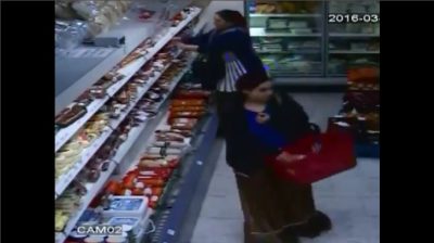 Empat wanita Roma mengunjungi supermarket di Rusia untuk 'berbelanja', mencuri makanan dan menaruhnya di bawah rok mereka. Petugas toko tampak stres melihat mereka memasuki toko.