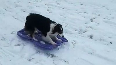 Dia telah meletakkan dasar untuk itu di Seattle, dan seorang penggembala Australia akhirnya dapat menikmati aktivitas favoritnya, kereta luncur. Dan dia tidak membutuhkan siapa pun untuk ditemani. Dia berjalan dengan kereta luncur di mulutnya ke puncak bukit, dan kemudian memanjat untuk perjalanan yang menyenangkan. Pemiliknya mengatakan anjingnya melakukan setidaknya 50 kali lari kereta luncur pada hari itu.