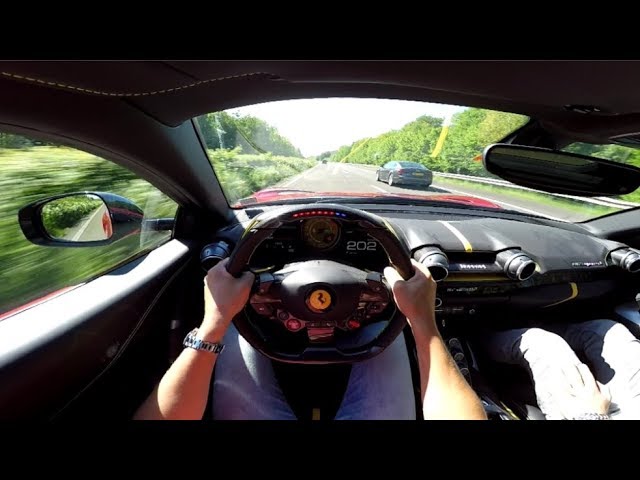 Video dari kursi pengemudi di dalam Ferrari 812 Superfast, saat dia mengemudi dengan kecepatan tinggi di Autobahn Jerman.