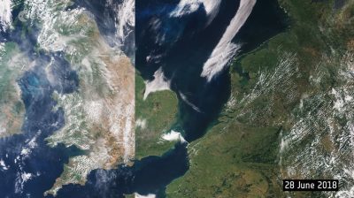 Foto satelit Badan Antariksa Eropa (ESA) di Eropa Utara, mengungkap dampak kekeringan parah yang melanda benua itu selama tiga minggu terakhir.