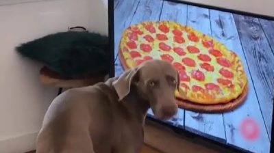 Di Lisboa, Portugal, seekor anjing mulai menjilati layar TV ketika pizza muncul di sana.