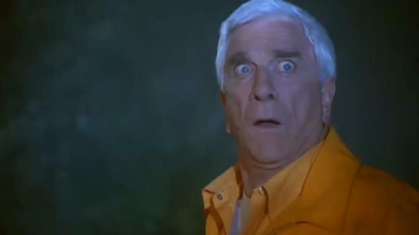 Leslie Nielsen mencoba menghindari kereta yang terus-menerus, dalam adegan lucu dari film 'Wrongously Accused'.