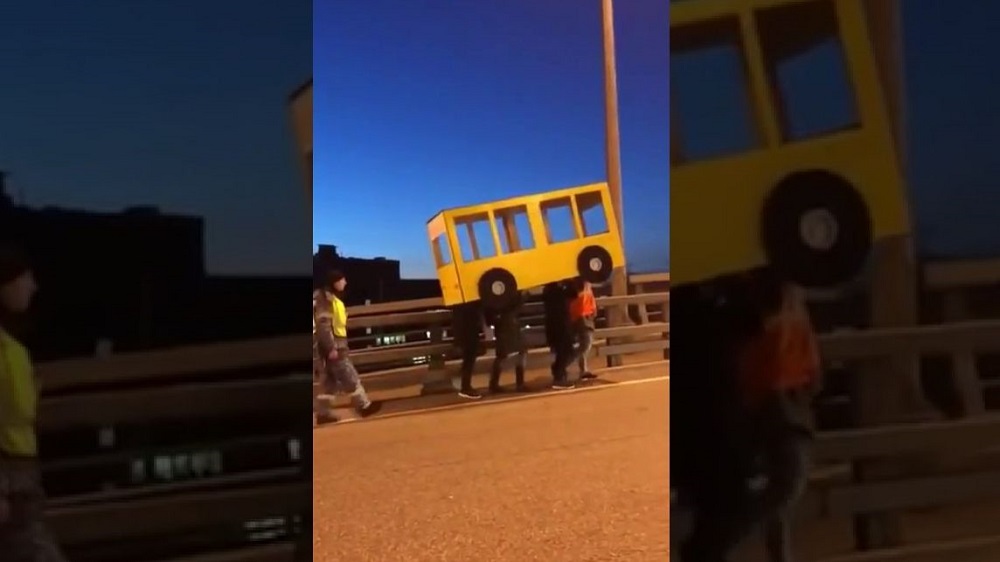 Di Vladivostok, Rusia, jembatan Zolotoï menghubungkan ke pusat kota namun memiliki kekhasan: pejalan kaki dilarang. Empat orang mempunyai ide untuk menyamar menjadi bus, sehingga mereka dapat menyeberangi jembatan dengan berjalan kaki dan mencapai pusat kota Vladivostok dengan lebih mudah. Sayangnya bagi mereka, petugas keamanan dengan cepat melihat kendaraan kuning aneh itu dan meminta penumpang untuk kembali.