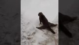 Di Vermont, Amerika Serikat, sekelompok bebek keluar berjalan-jalan di salju untuk pertama kalinya. Namun bebek-bebek tersebut mendapati bahwa tanahnya sangat dingin dan segera kembali ke tempat berlindungnya. Mundur! Mundur!!