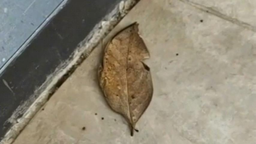 Seseorang menemukan daun kering yang aneh di tanah. Dia akan mencoba menangkapnya, namun daun tersebut sebenarnya adalah kupu-kupu dari spesies Kallima inachus yang hidup di hutan Asia. Dengan sayap tertutup, Kallima inachus sangat mirip dengan daun ek kering, sehingga menciptakan kamuflase yang menakjubkan.