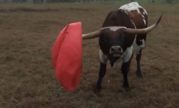 Seekor banteng dengan gembira bermain dengan bola yoga di padang rumput di Ima Survivor Animal Sanctuary di Cleveland, Texas, ketika tiba-tiba bolanya akan tertusuk. Banteng melempar bola ke pagar kawat berduri. Tepat setelahnya, dia tampak sedih dan meninggalkan mainan itu di kaki pemiliknya.
