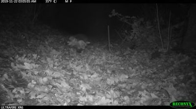 Opossum Virginia membawa dedaunan dengan ekornya untuk membuat sarang.
