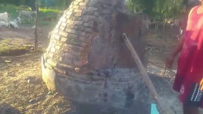 Operator ekskavator menggerakkan lengan alat beratnya dengan sangat presisi,