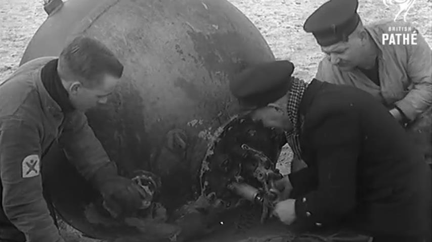 Perwira Angkatan Laut Kerajaan Inggris menjinakkan ranjau laut 'pembunuh' Jerman yang terdampar di pantai timur negara itu selama Perang Dunia II.