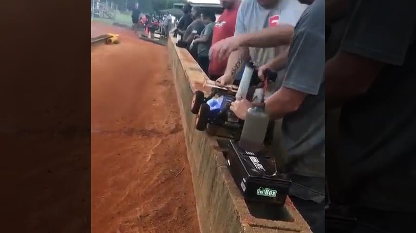 Mengisi bahan bakar mobil yang dikendalikan jarak jauh selama balapan. Perhatikan di sini bahwa pit stop di Formula 1 untuk mengganti ban, itu lebih cepat.