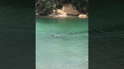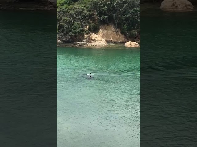 Paus Orca berenang melewati beberapa anak (Selandia Baru)