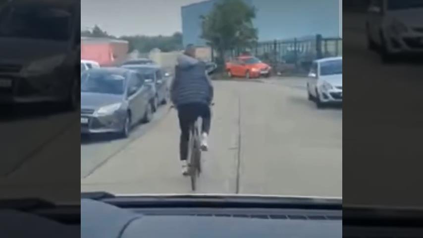 Seorang pengendara sepeda muda ingin menghalangi pengendara yang mengikutinya, tapi dia dihukum karena kelalaiannya.