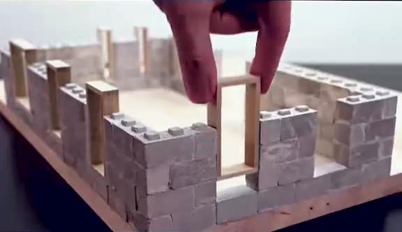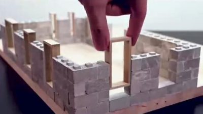 Pembangunan rumah kecil dengan batu bata, semen dan kayu, seperti bangunan sungguhan.