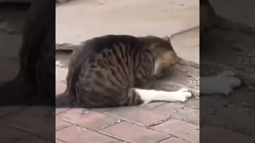 Dengan gerakan yang cepat dan terampil, seekor kucing menangkap tikus yang bersembunyi di lubang kecil.