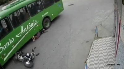 Di Brasil, seorang pengendara sepeda motor terjatuh di depan sebuah bus di sebuah persimpangan, dan terjun ke depan mendarat dengan kepala tertancap di roda belakang kendaraan. Helmnya menyelamatkannya dan dia lolos tanpa cedera serius.