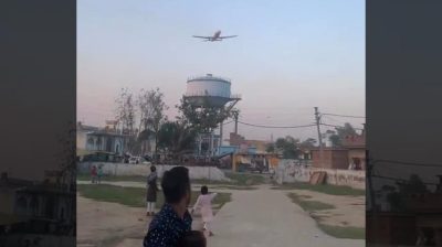 Sebuah pesawat berada sangat dekat dengan kawasan pemukiman, tapi untungnya tabrakan bisa dihindari beberapa meter sebelum menyentuh tanah.